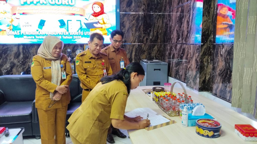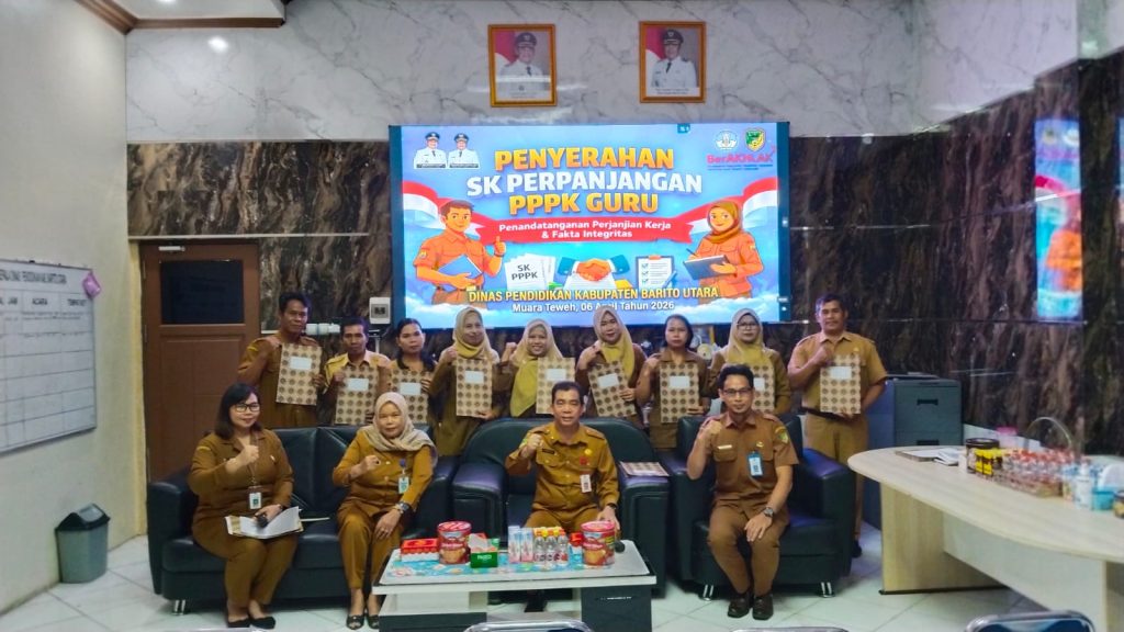 Muara Teweh, 06 April 2026. Penyerahan SK Perpanjangan PPPK Guru, sekaligus penandatanganan dan Fakta Integritas di Lingkungan Dinas Pendidikan dengan jumlah 9 orang untuk angkatan tahun 2021 yang dilaksanakan di Ruang Kerja Kepala Dinas.