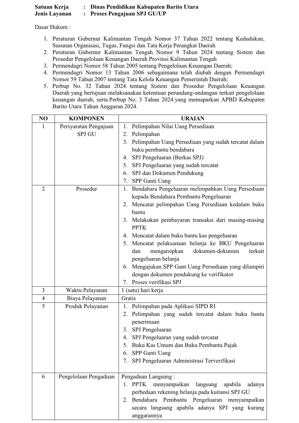 Standar Pelayanan dan SKM admin 28/09/2025 Standar Pelayanan STANDAR PELAYANAN LINGKUP DINAS PENDIDIKAN KAB. BARITO UTARAUnduh Laporan SKM Laporan Hasil SKM Dinas Pendidikan Kab. Barito Utara Tahun 2025Unduh